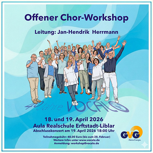 2026 wird der Chor VocalO Erftstadt e.V. 40 Jahre jung und zu diesem Jubiläum haben wir uns selbst ein Geschenk gemacht. Am 18. und 19. April veranstalten wir einen Chorworkshop mit Jan-Hendrik Herrmann