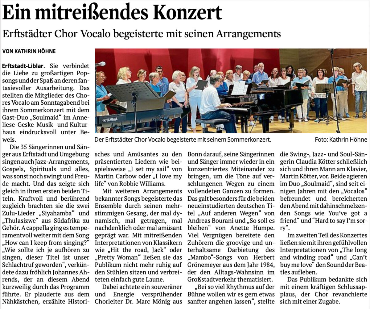 Ein mitreißendes Konzert“, so titelte der Kölner Stadtanzeiger am 06. Juni 2023 nach unserem Auftritt im Geske-Haus der Musikschule in Erftstadt-Liblar.